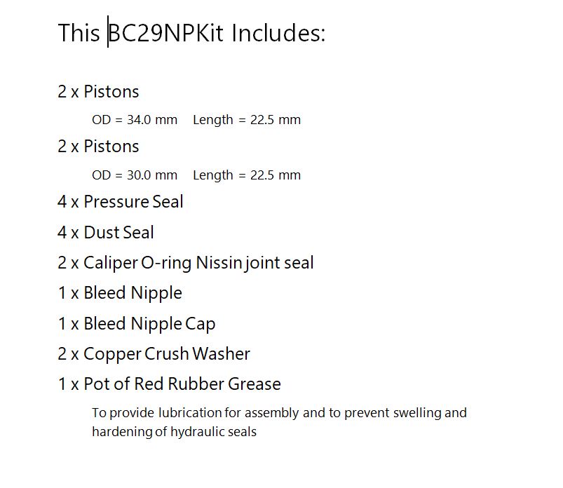 Product: Brake Caliper Seal Kit with OEM Piston BC29NP for 1 Nissin Caliper