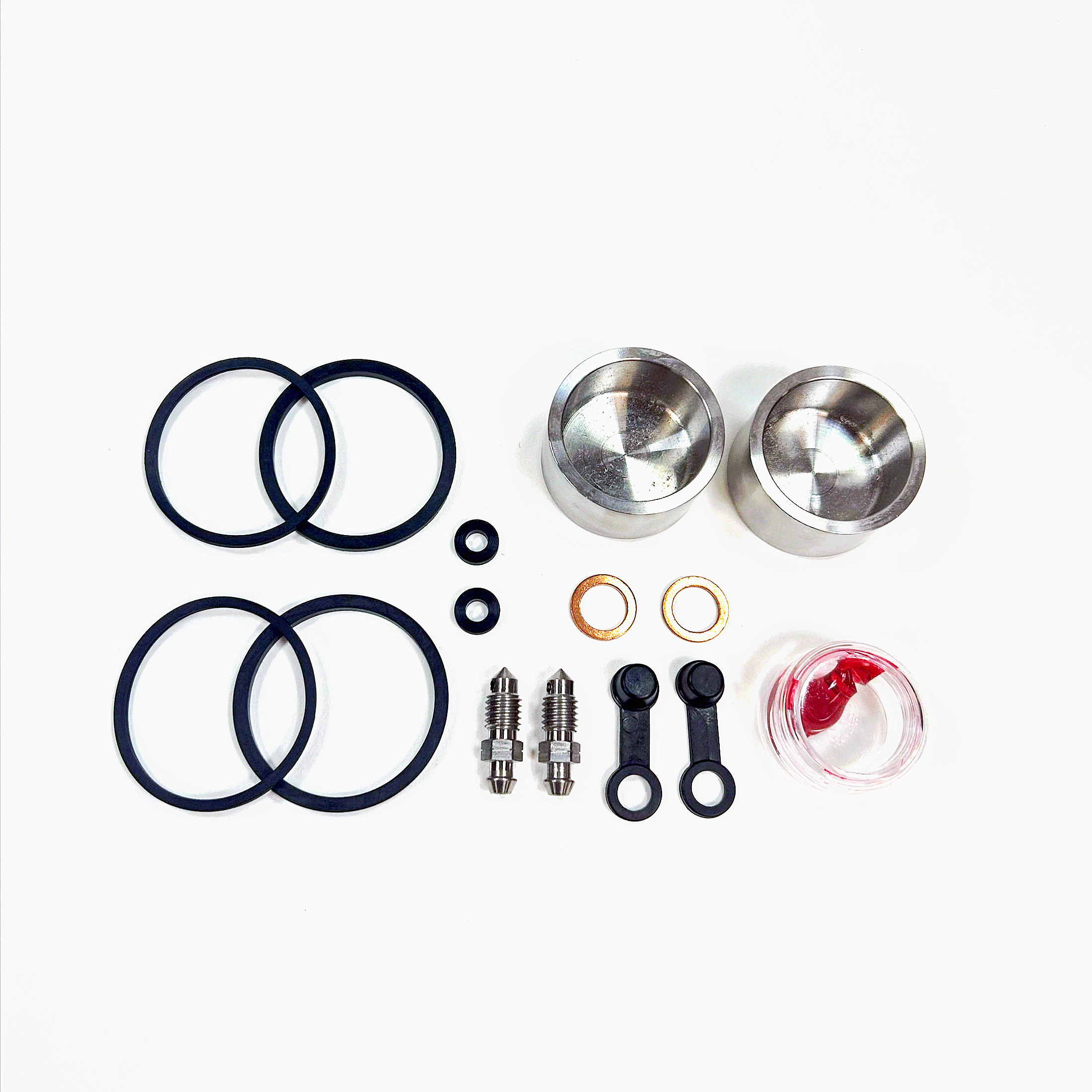 This kit includes the components necessary to rebuild caliper including stainless steel pistons. Proper functioning of the brake system depends on pistons that move easily within the pistons and seals play a big role in protecting the pistons. Fluid leaks, reduced braking ability, unusual noises, or pulling to one side can all be signs that your caliper seals are bad. Please contact us with questions regarding fitment.