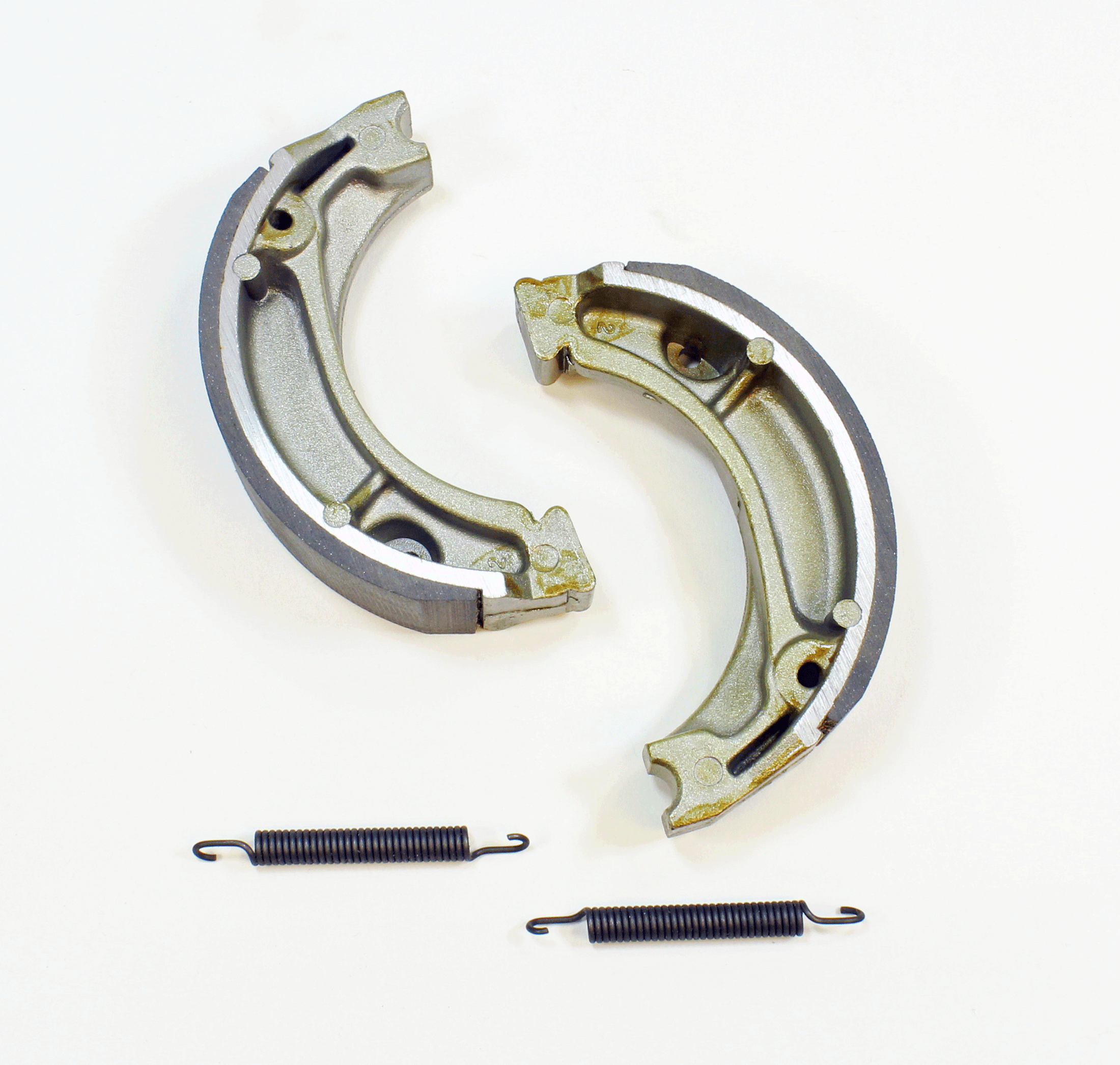 EBC Brakes™ Organic OE quality replacement motorcycle brake shoes are radius ground, edge trimmed and feature lead in and lead out chamfers at lining ends. These shoes come with original equipment style springs. The shoes are made using high-pressure die cast aluminum platforms with bonded brake linings.