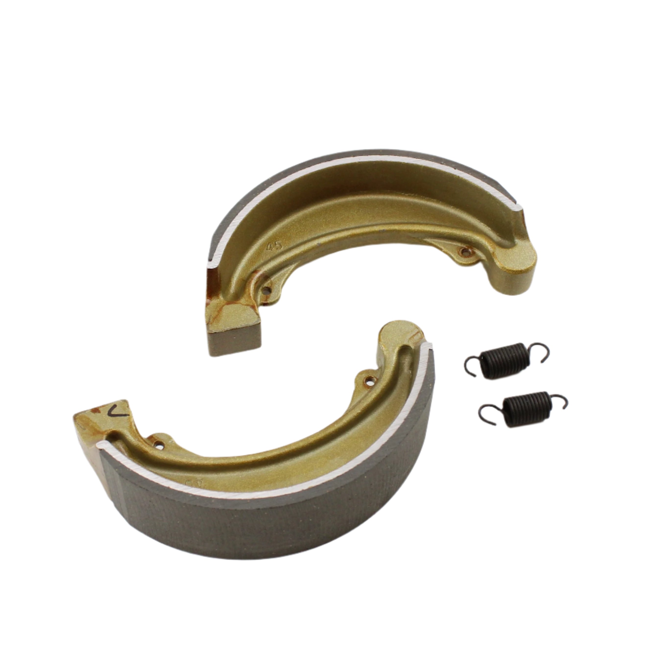 EBC Brakes™ Organic OE quality replacement motorcycle brake shoes are radius ground, edge trimmed and feature lead in and lead out chamfers at lining ends. These shoes come with original equipment style springs. The shoes are made using high-pressure die cast aluminum platforms with bonded brake linings.